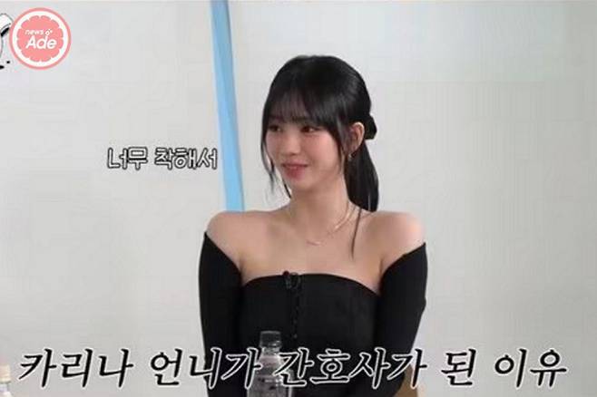카리나에 따르면 자신의 언니의 직업은 간호사이며 자신이 살면서 본 사람 중에 가장 착한 사람이라고 했죠.