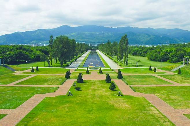 각진 잔디밭 위에서 해당화, 라일락, 등나무, 포플러나무와 함께 저 멀리 보이는 데이네산을 바라보며 취하는 휴식은 삿포로 여행의 보상일 겁니다.