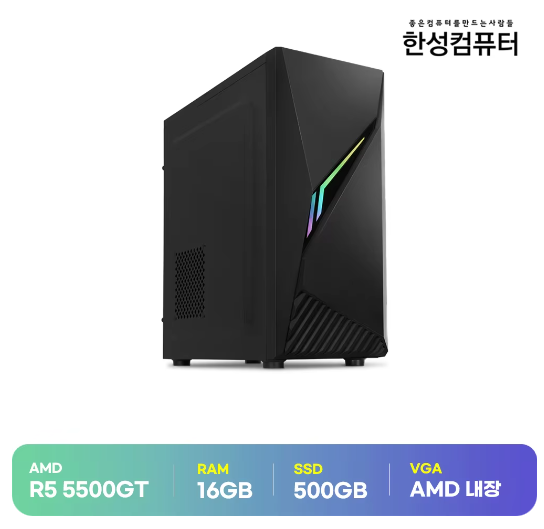 상품링크 → 한성컴퓨터 AMD 라이젠5 5500GT 500GB+16GB 슈컴 조립PC-159223 데스크탑 본체 컴퓨터 사무용 가정용 가성비