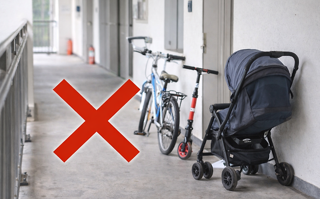 “잠깐만” 두겠다고 복도에 자전거, 킥보드, 유모차를 세워두는 경우도 흔합니다. 하지만 장기간 방치되면 명백한 공용 공간 점유로 간주됩니다.
