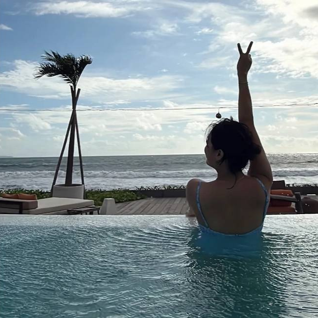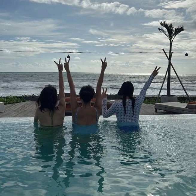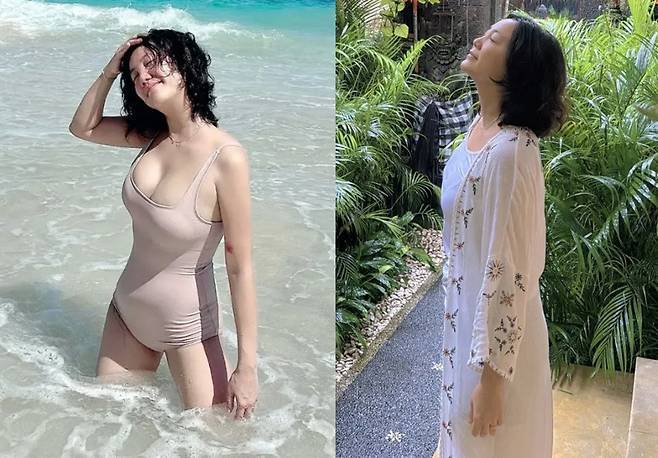 바닷물 속에서 촬영된 컷에서는 내추럴한 웨이브 단발과 심플한 원피스 수영복으로 자연스러운 아름다움을 뽐냈으며, 화보 같은 분위기를 자아냈습니다.