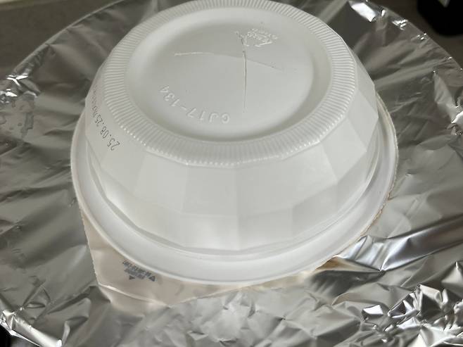 냄비 크기가 햇반 사이즈와 딱 맞다면 좋겠지만, 대부분 큰 경우가 많을 겁니다. 그럴 때는 포일을 냄비에 덮은 후 가운데에 구멍을 내주세요. (햇반 크기보다는 작게)