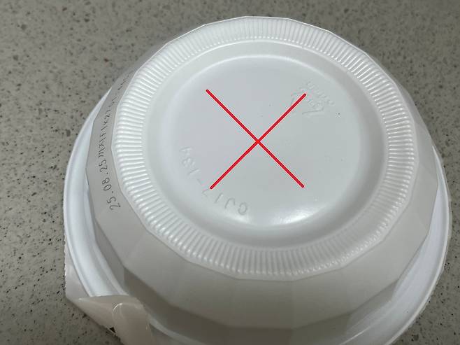 뒷부분의 플라스틱 부분도 칼을 가지고 x자로 표시를 해 주세요. 플라스틱 부분에도 칼집을 내줘야 증기가 빠져나가 팽창이나 터짐 현상을 막을 수 있습니다.