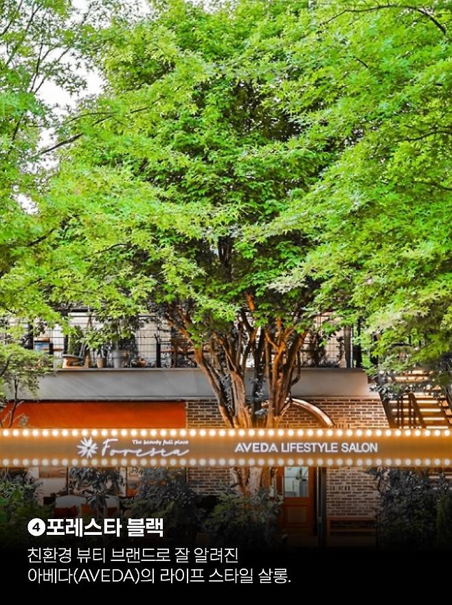 친환경 뷰티 브랜드로 잘 알려진 아베다(AVEDA)의 라이프 스타일 살롱 포레스타가 오픈한 스파입니다. 헤어와 메이크업은 물론 헤드 스파와 네일 케어까지 토털 뷰티 케어를 원스톱 서비스로 제공하는 것은 물론, 핸드 마사지와 상반신 마사지까지 이용할 수 있어 바쁜 프리미엄 고객에게 어필하는 중.