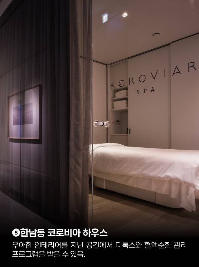 한남동 라오스 대사관 옆에 위치한 코로비아 하우스는 완벽할 힐링과 웰빙을 위한 공간입니다. 호텔 못지 않은 우아한 인테리어와 프라이빗하게 구분된 공간에서 다양한 케어를 받을 수 있는데요.