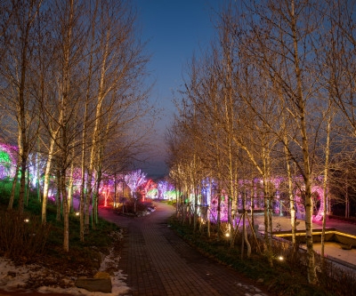 하지만 이 공간이 진짜 얼굴을 드러내는 순간은 해가 지고 난 뒤다. 조명이 하나둘 켜지면 퍼스트가든 전체가 완전히 다른 분위기로 변신한다. 벚나무길을 따라 펼쳐지는 루미나리에, 잔잔한 음악, 오색빛 조명이 만들어 내는 그림자는 낮의 정원을 지워버리고 새롭게 태어난 듯한 몽환적 풍경을 선물한다.