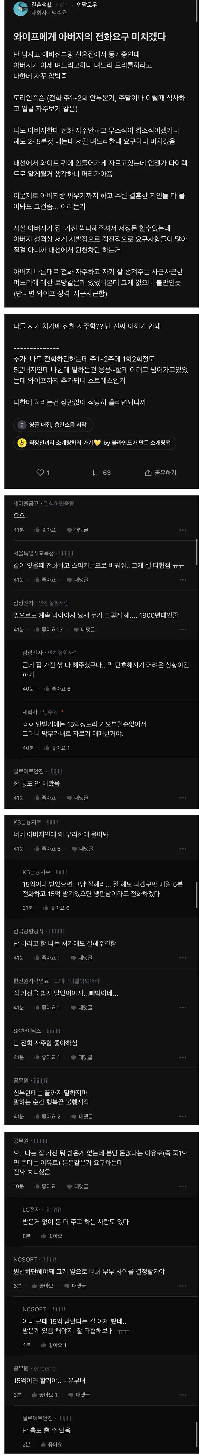와이프에게 아버지의 전화 요구로 고민인 남자