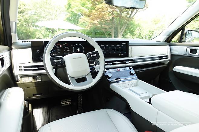 실내에는 디지털 계기판과 디스플레이가 하나로 연결된 파노라믹 커브드 디스플레이, 컬럼 타입 전자식 변속 레버, 운전석 에르고 모션 시트, 1열 릴렉션 컴포트 시트 및 다리 지지대, 디지털 센터 미러, 스마트폰 2대를 무선으로 동시에 충전할 수 있는 듀얼 충전 등이 적용됐다.