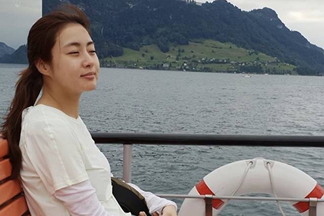 공개된 사진 속에는 유람선에 탑승해 루체른 호수를 배경으로 앉아 있는 강소라의 모습이 담겨 있었습니다.