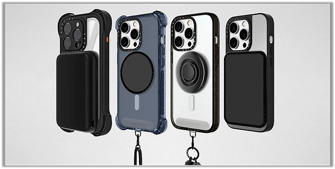 하지만 누가 뭐라 해도(?) 케이스티파이의 주요 제품은 스마트폰 케이스야. 애플, 삼성, 구글의 다양한 기종을 지원 중인데, 애플의 아이폰에서 사업 아이디어를 얻었던 만큼 애플과 관련된 제품이 많아. 범퍼 테두리가 없는 슬림한 디자인의 베스트셀러 ‘임팩트 케이스’, 카메라 테두리 링에 경첩을 달아 기기를 거치할 수 있는 ‘링 스탠드 케이스’, 베젤이 두껍게 튀어나와 가장 강력한 보호력을 자랑하는 ‘바운드 케이스’, 투명 케이스라고 불리는 ‘클리어 케이스’ 등이 있어📱.