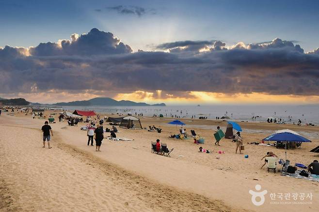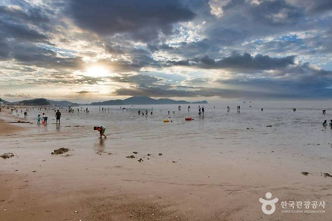 이곳의 가장 큰 특징은 밀물과 썰물의 차이를 활용해 전혀 다른 두 가지 체험이 가능하다는 점입니다. 밀물 때는 수심이 얕고 파도가 잔잔해 어린아이들도 안전하게 물놀이를 즐길 수 있고, 썰물 때는 넓게 드러난 갯벌 위에서 조개와 게를 직접 잡아볼 수 있는 생태체험이 펼쳐집니다. 별도의 체험비는 없으며, 개인 도구만 준비해오면 누구나 갯벌의 생생한 현장을 누릴 수 있어요.