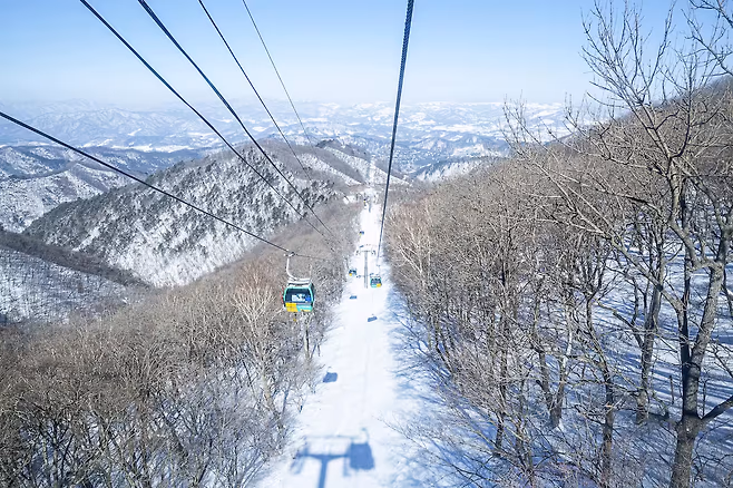 평창에서 또 다른 눈부신 설경을 자랑하는 곳은 발왕산 케이블카로 유명한 발왕산이다. 국내에서 열두 번째로 높은 산으로 알려진 발왕산은 해발 약 1,458m로, 정상에 오르면 눈앞에 펼쳐지는 설경이 압도적이다. 등산로를 따라 직접 올라가는 이들도 있지만, 발왕산의 핵심 매력은 국내 최장 길이로 알려진 케이블카를 타고 편하게 겨울 산 풍광을 즐길 수 있다는 점이다.