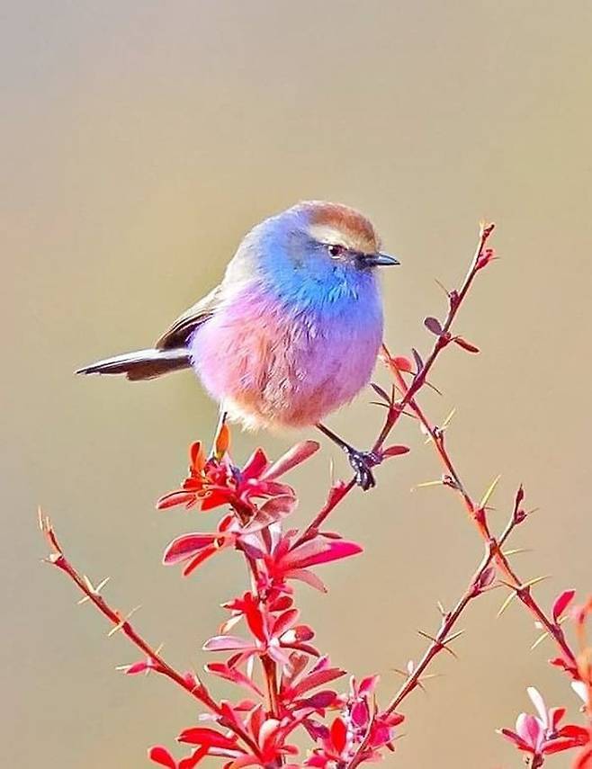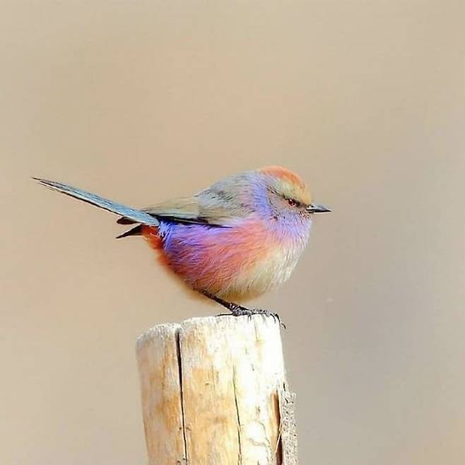 여기에 한발 더 나아가 이 새는 색조 화장이라도 한 것 마냥 파스텔 색상의 털들이 한데 어울려져 있어 시선을 제대로 강탈하게 하는데요.