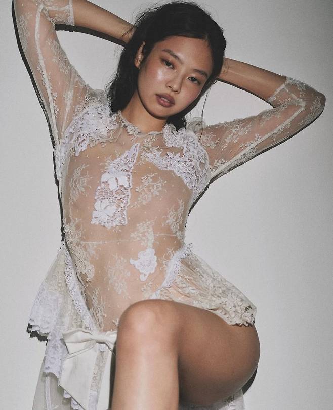이 밖에도 레이스 스타일의 시스루 보디슈트를 입고 도발적인 포즈를 한 제니의 모습은 국내에서 주로 보여준 러블리한 모습과는 상반된 파격으로 다가왔다.