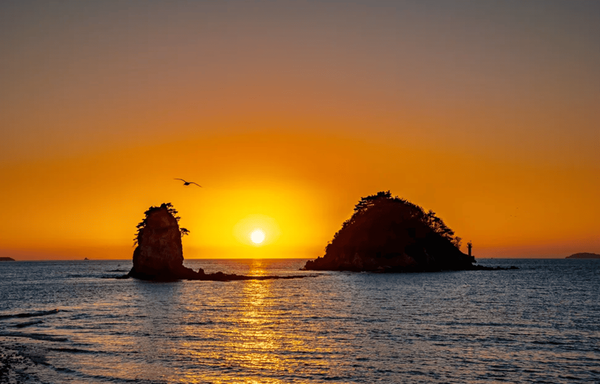 꽃지해수욕장은 태안군 안면도에 위치한 해변으로, 특히 해질녘 풍경이 아름답기로 유명합니다. 해변을 대표하는 두 개의 거대한 바위, 할배바위와 할매바위는 마치 바다를 지키는 수호신처럼 웅장한 모습을 자랑하는데요. 이 바위 사이로 해가 지는 순간, 하늘과 바다가 황금빛으로 물들며 장관을 이루는 곳입니다. CNN도 이러한 풍경을 극찬하며 "한국에서 가장 아름다운 일몰 명소" 중 하나로 선정했을 정도입니다.