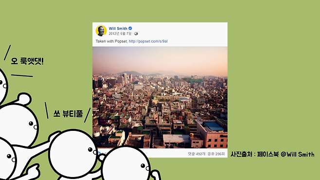 이와 관련해 2012년 5월 <맨 인 블랙 3> 개봉을 앞두고 방한한 배우 '윌 스미스'가 비행기에서 우리나라 건물 옥상을 찍은 사진을 SNS에 올린 적이 있습니다.