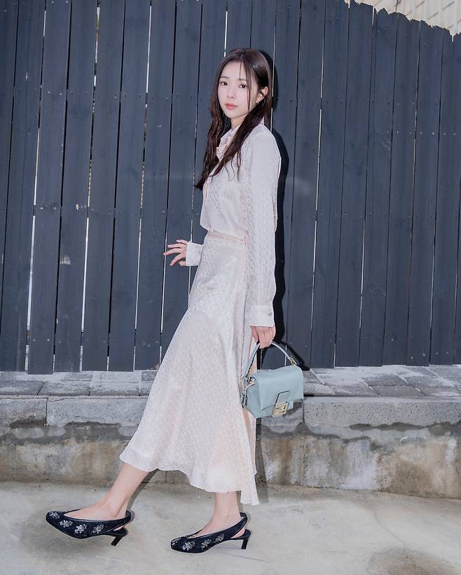 최근 채수빈은 자신의 인스타그램을 통해 한 장의 사진을 공개하며 우아한 비주얼을 자랑했다. 사진 속 그녀는 은은한 광택이 감도는 실크 원피스를 착용해 로맨틱한 무드를 연출했다.