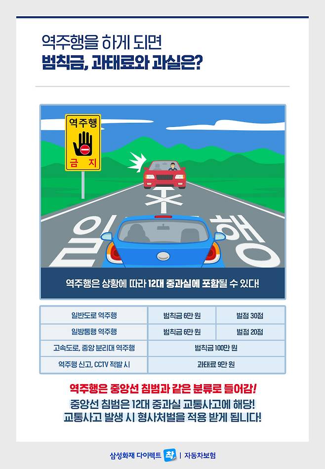 역주행을 하게 되면 범칙금, 과태료와 과실은?