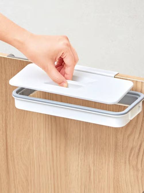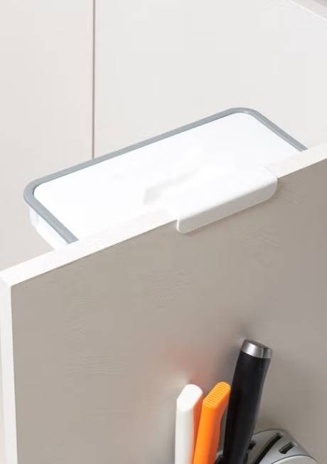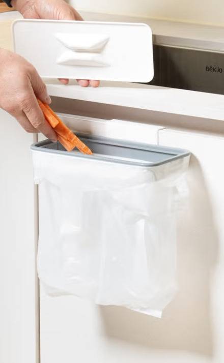 싱크대 문 상단에 걸기만 하면 OK!별도 공구 없이 설치가 가능하며, 요리 중 나오는 음식물 찌꺼기를 바로 버리기 편리합니다