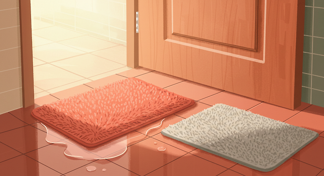 특히 욕실 앞 매트는 샤워 후 젖은 발로 밟게 되기 때문에 늘 축축한 상태로 남아있기 쉽고,그 속에 세균과 곰팡이가 자라기 시작하면 특유의 눅눅하고 텁텁한 냄새가 나기 시작합니다.