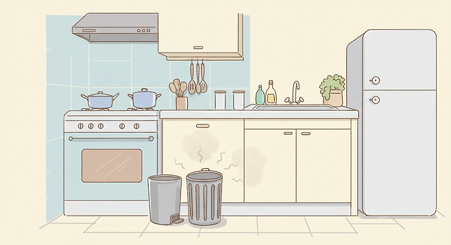 냄새 나는 집의 가장 흔한 원인 중 하나는 주방에 놓인 음식물 쓰레기통입니다.