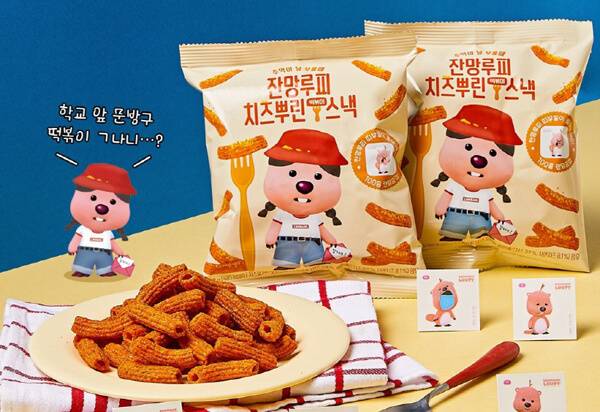잔망루피는 뽀로로에 등장하는 비버 캐릭터를 재해석한 IP로, 최근 단독으로 다양한 제품군과 콜라보를 하며 존재감을 높이고 있다. CU와 손을 잡고 만들어진 잔망루피의 스낵은 학교 앞 문방구 떡볶이를 컨셉으로 삼은 '잔망루피 치즈 뿌린 떡볶이 스낵'이다. 바삭한 과자 베이스에 매콤달콤한 떡볶이 소스를 뿌리고, 치즈를 뿌려 마무리한 과자다. 잔망루피 띠부씰 100종 중 하나가 랜덤으로 들어있다. 편의점 판매가는 1,700원이다.