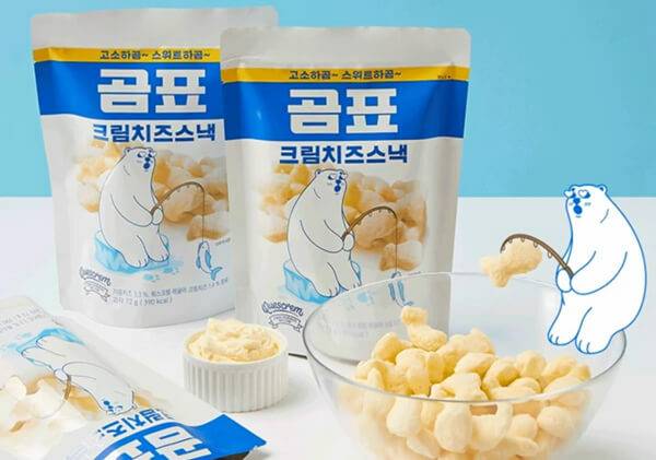 레트로 브랜드 중에서 대한제분의 '곰표'만큼 대중적인 호감도가 높은 브랜드가 또 없을 것이다. 곰표로 출시된 새로운 스낵의 이름은 '곰표 크림치즈 스낵'으로, 퀘스크렘 크림치즈를 활용한 스낵이다. 첫맛부터 끝맛까지 진항 크림치즈의 풍미를 느낄 수 있는 스낵으로, 편의점 CU에서 만날 수 있는 제품이다. 과자의 모양은 표곰이가 잡은 물고기의 모양을 하고 있다. 가격은 봉지당 1,900원이다.