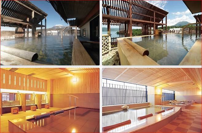 온천 시설은 1층 정원탕과 8층 전망탕 두 곳이 있습니다.하나는 바위와 숲이 어우러진 전통 노천탕,또 하나는 아칸 호수를 내려다보며 즐기는 탁 트인 전망탕이에요.여러 종류의 온천을 경험하고 싶다면 유쿠노사토가 더 다채로운 선택지를 줍니다.