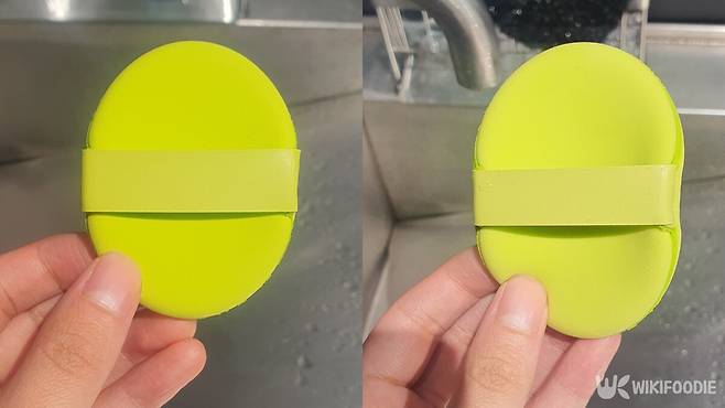 사용 방법은 간단하다. 먼저 퍼프에 미지근한 물을 충분히 묻히면 퍼프가 서서히 부풀어 오른다. 이렇게 부드럽게 커진 퍼프의 물기를 가볍게 짜낸 뒤, 파운데이션이나 쿠션 제품을 묻혀 얼굴 안쪽부터 바깥쪽으로 두드리듯 펴 바른다. 마지막으로 원하는 부위에 한 번 더 가볍게 두드려주면 수분 광이 살아있는 피부 표현이 완성된다.