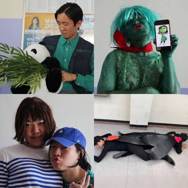 학생들은 인기 아이돌 뉴진스, 최근 갈등을 빚은 어도어 민희진 대표와 하이브 방시혁 의장, 애니메이션 영화 <인사이드아웃2> 캐릭터, 최근 기승을 부린 러브버그 등으로 변신해 웃음을 자아냈다. 인사이드아웃2>