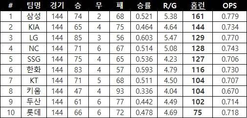 '소총 부대'라는 말조차 민망한 수준의 장타력 빈곤이었다.