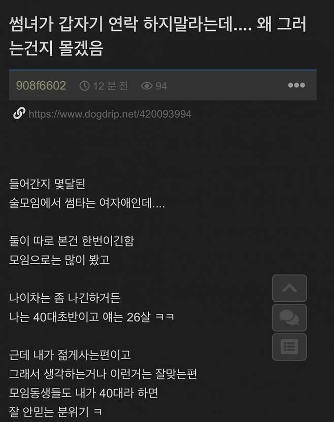 썸녀가 연락하지 말라는 게 이해가 안 간다는 사람