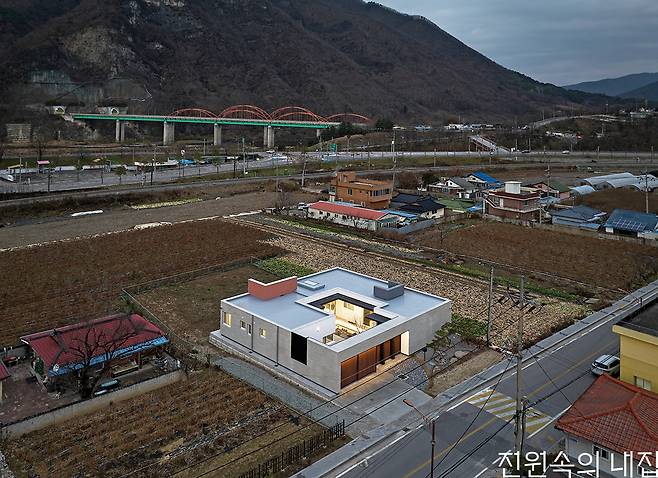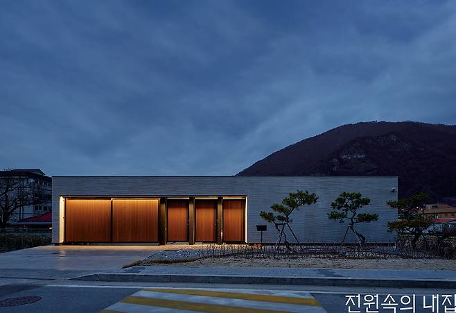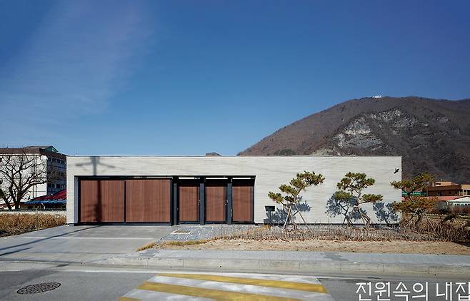건축구조설계 엔지니어로 일하는 건축주는 가까운 미래에 고향인 영월에 내려가 부모님과 함께 살 계획으로 가족의 첫 집짓기를 결심했다. 건축주의 어머님은 평범한 이층집 앞으로 마당이 시원하게 열린 전원주택의 이미지를 떠올렸지만, 건축주의 생각은 달랐다. 우선 60대인 부모님의 편의와 예산을 고려해 단층 주택을 선택했다. 그리고 직업적으로 다양한 주택 현장을 경험해보니 단독주택에서 2층의 활용도가 생각보다 낮다는 점이 결정의 한 요인이 되었다. 외부의 시선을 민감하게 느끼는 건축주는 바깥 어디에서도 집 안이 보이지 않도록 중앙 마당을 품은 ㅁ자 구조를 원했다. 집의 이름이 ‘네모난 집’이 된 이유이기도 하다. ㄷ자의 생활 공간과 주차장, 그리고 일반적인 주택보다 규모가 큰 대문을 더해 네모반듯한 가족의 보금자리가 탄생했다.