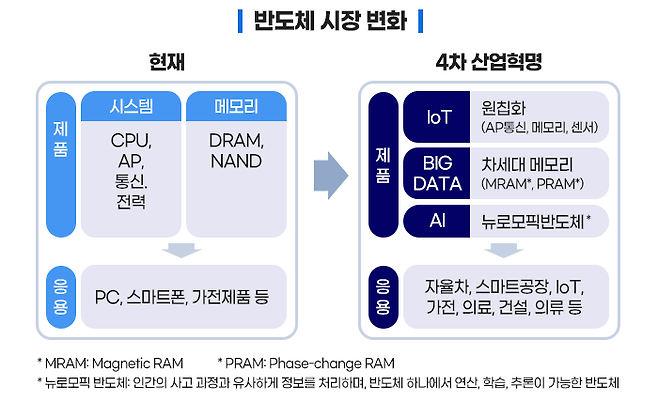 이제는 4차 산업혁명시대를 맞아 클라우드, 빅데이터, 인공지능, 사물인터넷, 증강현실, 가상현실, 도심항공교통(UAM: Urban Air Mobility), 로봇 등고성능 반도체의 수요가 훨씬 더 풍부해졌습니다.