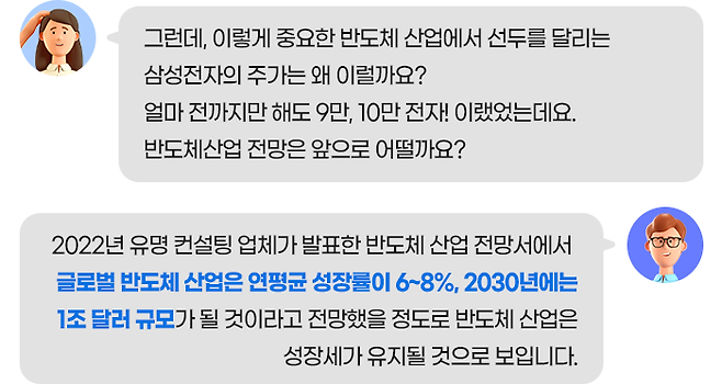 과거에는 컴퓨터에 의존한 반도체 수요를 중심으로 호황과 불황의 사이클이 결정되었지만, 2000년대 들어서 휴대폰, 디지털카메라, MP3플레이어, 내비게이션 등 다양한 제품이 나오면서 반도체의 수요는 더 다양해졌습니다.