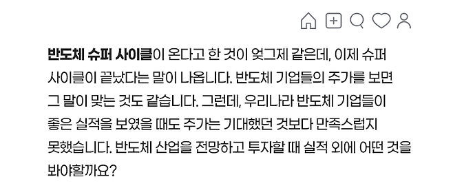 이것을 확인하기 위해서는 반도체 슈퍼 사이클이 언제 끝나는지 알아볼 필요가 있습니다.