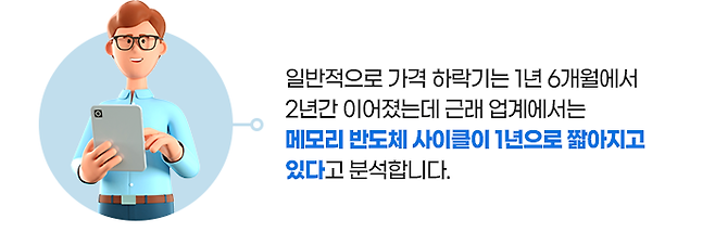 메모리 반도체는 투자에 따라 공급이 계단식으로 증가하기 때문에 주기적인 공급 과잉을 피할 수 없습니다. 메모리 반도체 공급을 늘리기 위해서는 대규모 설비투자가 필요합니다.