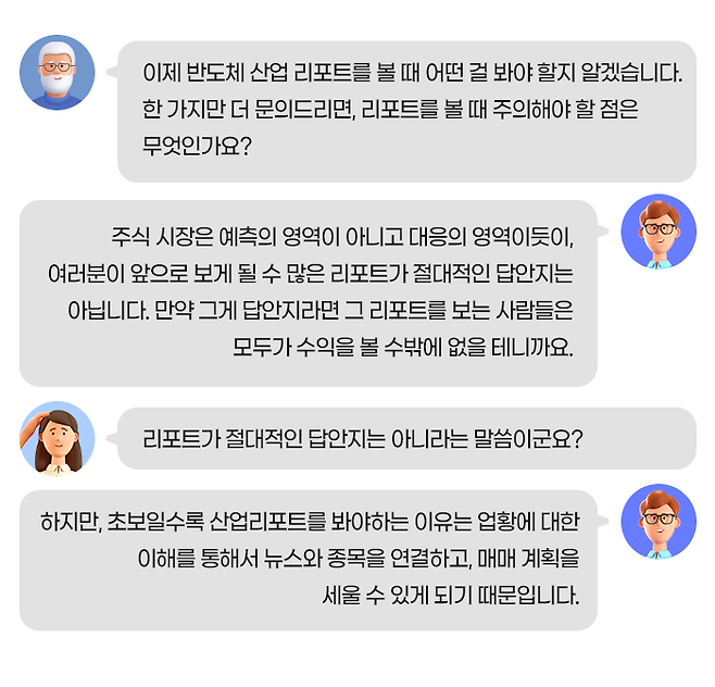 해당 업계에 대한 다양한 증권사의 리포트를 2~3개 정도 읽으면 자연스레 공통된 의견을 찾을 수 있고, 그 의견을 기반으로 어떻게 투자할지 고려하면 됩니다.