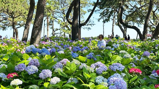 그 주인공은 바로 해운대송림공원. 소나무 숲 아래 수국이 만개하며 펼쳐지는 이 계절 한정의 장면은, 부산 여름 여행에서 놓쳐선 안 될 새로운 명소로 떠오르고 있다.