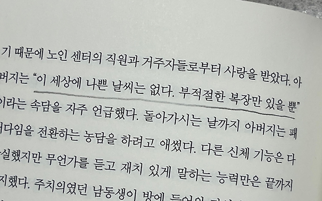 책 『당신의 가능성에 대하여』의 유명한 문장이 이를 잘 설명한다. “이 세상에 나쁜 날씨는 없다. 부적절한 복장만 있을 뿐.” 상황을 탓하지 않고, 그 상황에 맞게 마음의 ‘복장’을 바꾸는 사람은 어떤 인생도 다시 편안하게 만든다.