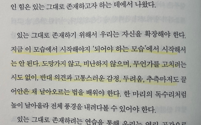 나이가 들수록 새로운 도전은 더 어렵고 두려움은 더 커진다. 하지만 잘 사는 사람은 두려움을 없애려 하지 않고, 두려움을 가진 채로 앞으로 나아간다.