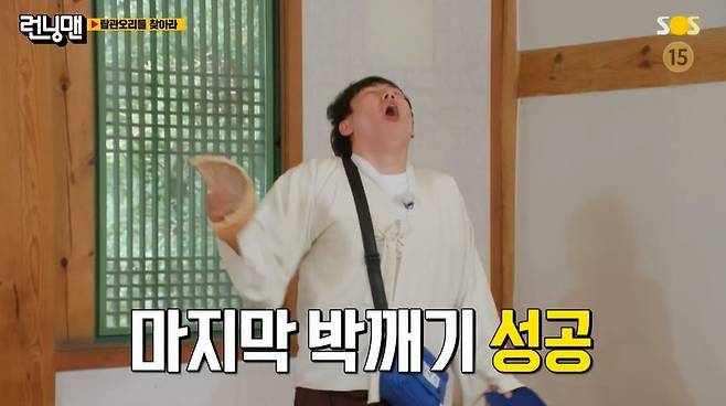 마지막 ‘견우와 직녀’의 탐관오리는 양세찬으로 유재석에 의해 검거됐다. 결국 양세찬은 머리로 박 깨기 벌칙을 수행, ‘런닝전’의 마침표를 찍었다.