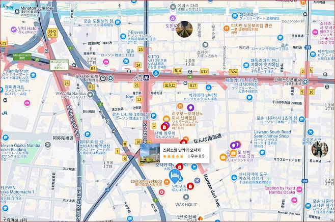 또한 도톤보리, 신사이바시, 쿠로몬시장 등 오사카 주요 관광지와 쇼핑 거리도 도보로 이동 가능해서, 하루 일정을 짜는 데에 있어 이만한 입지가 없습니다. 위치만으로도 예약할 충분한 이유가 되는 곳이에요.
