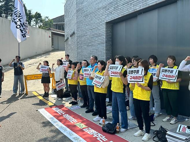 전국민주노동조합연맹(이하 민주노총) 서비스연맹 마트산업노동조합(이하 마트노조) 홈플러스지부와 홈플러스 사태 해결을 위한 공동대책위원회(이하 공대위)는 20일 오후 3시 김병주 MBK 회장 자택 앞에서 ‘홈플러스 문제 해결촉구’ 집회를 가졌다. 집회에 참여한 이들은 홈플러스 근로자와 입점업체들의 생존권 보장을 위한 MBK의 경영 정상화 노력과 금융당국의 적극적인 개입을 촉구하고 나섰다.