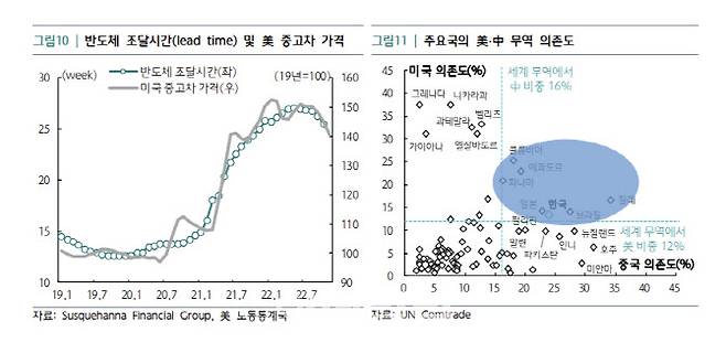 공급망 재편 및 고물가 고착화 위험 등 구조변화발 불확실성도 우려 대목이다. 이는 교역 감소 및 효율성 저하 등을 통해 경제에 악영향을 미칠 수 있고, 특히 한국처럼 미·중 모두와 교역이 활발한 국가일수록 손실이 확대될 가능성이 있다고 연구소는 분석했다. 예를 들어 지난해 일부 차종이 차량용 반도체 부족으로 신차 출고 대기 기간이 1년을 훌쩍 넘어, 그 기간 금리가 급등해 해당 중고차 값이 신차보다 비싸지는 기현상이 빚어지기도 했다.