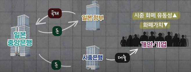 새롭게 찍은 돈으로 중앙은행으로 국채를 매입하는 식으로 시중에 유동성을 풀어요. 이 경우 공급이 많아지니 그 가치는 낮아지고요. 그에 따라 돈의 보유가치인 금리 또한 낮아지는 건 공식과도 같아요.