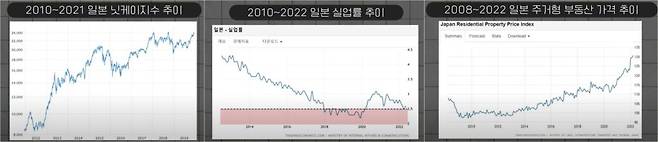 다만 지난해부터 시작된 공급 중심의 물가 상승이 일본 경제에 부담을 주고 있어요. 특히 최근 미국이 기준금리를 올리며 경기 침체 우려가 나오고 있는데, 경기 침체기 ‘안전자산’ 역할을 했던 엔화의 값어치는 오히려 낮아지고 있죠. 또 아베 사후 기시다 후미오 총리가 양적완화를 접는 ‘기시다노믹스’를 추진할 수 있다는 말도 나오죠.