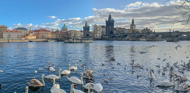 프라성에서 카를교 쪽으로 골목을 내려오다 보면 하얀 자태를 뽐내는 백조 무리를 발견할 수 있는데요. 해가 빛나고 날이 따뜻한 계절에는 반짝이는 호수에서 유영하는 백조의 모습을 한눈에 담을 수 있다고 합니다. 하얗고 보드라운 백조가 프라하의 시가지를 배경 삼아 유유히 떠다니는 광경은 많은 여행객들이 잊지 못할 장면으로 꼽곤 합니다.