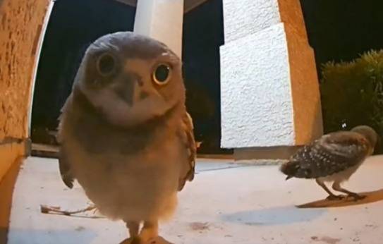 현관 앞에 나타난 두 마리 올빼미, 특별한 이웃 방문기