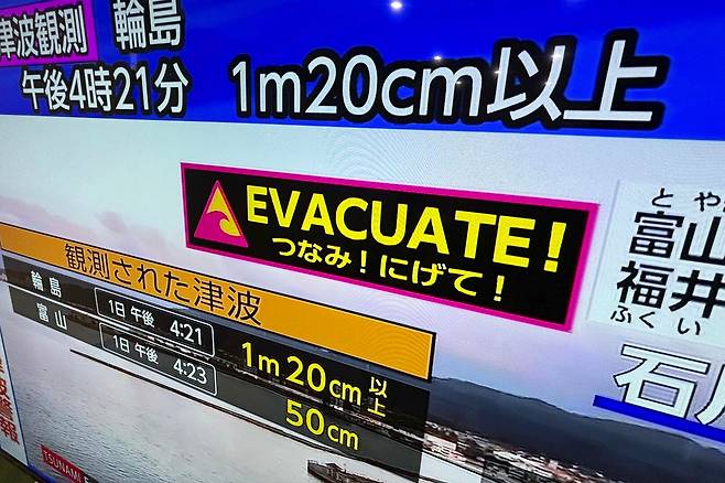 지진 당시 이시카와현 가나자와역에 있었다는 한국인 관광객은 "휴대폰에서 지진이라는 알람이 떠서 바로 개활지(탁 트인 땅)로 뛰었는데 사람이 중심을 잡기 힘들 정도였다. 그렇게 흔들릴 수 있다는 걸 처음 알았다. 바닥도 출렁거렸다"라고 전했습니다.
